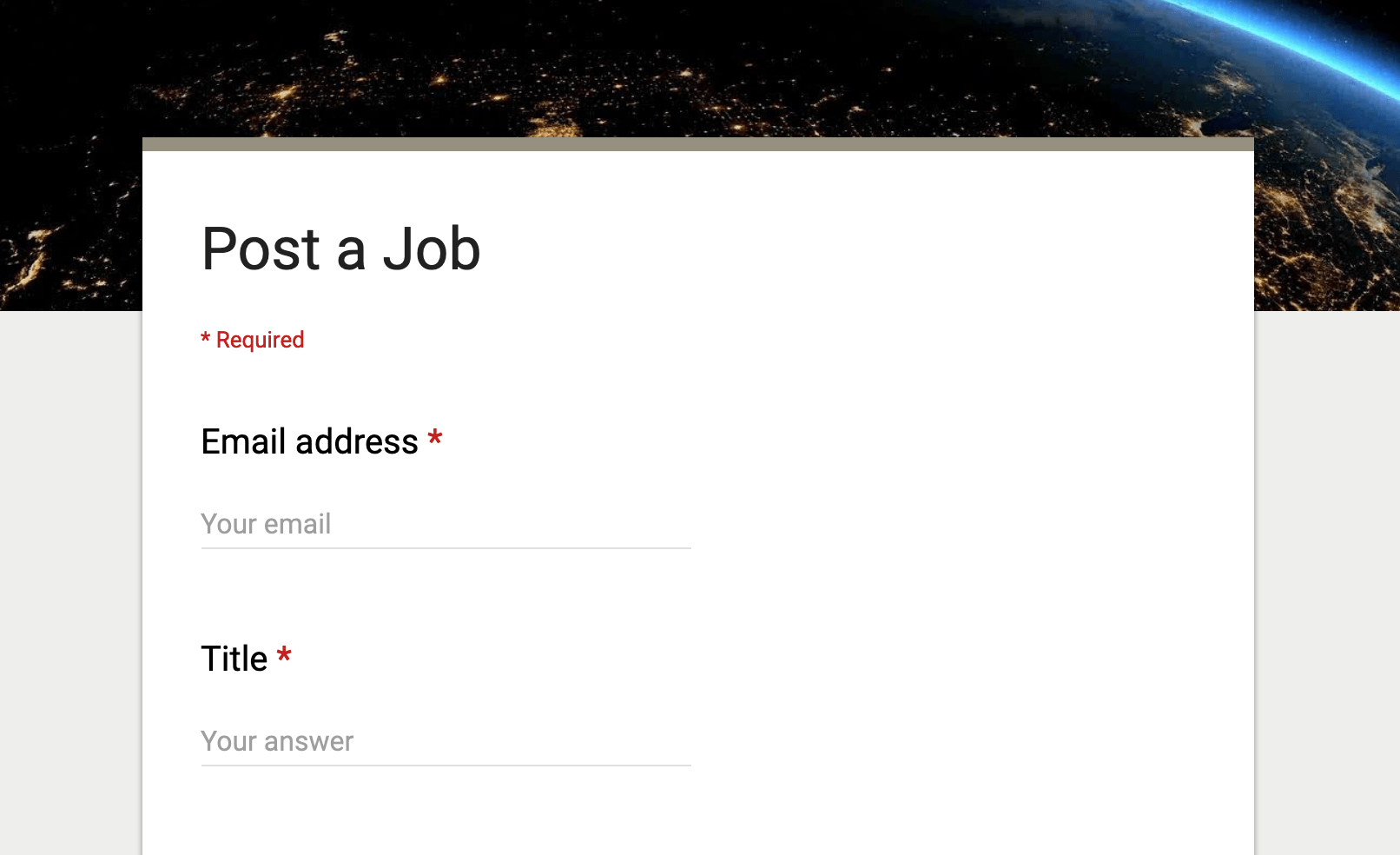 You can add embeded Google Form to your website to be able to collect data from users. For example you want to make a post a job form for your vacancy website. This form will be in your domain subpage like example.com/post-job