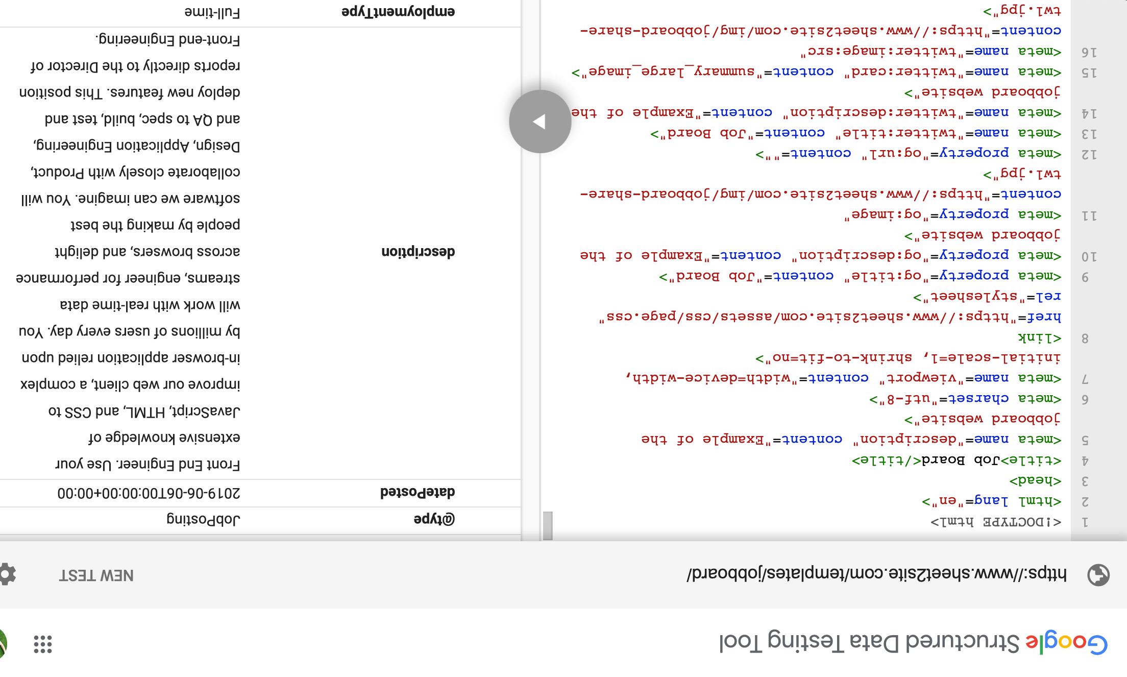Now Sheet2Site Job board Tempate have auto genereted JobPosting schema from Google Sheet. You can improve the job seeking experience by adding job posting structured data to your job posting web pages. Adding structured data makes your job postings eligible to appear in a special user experience in Google Search results. More detailed about schema.here