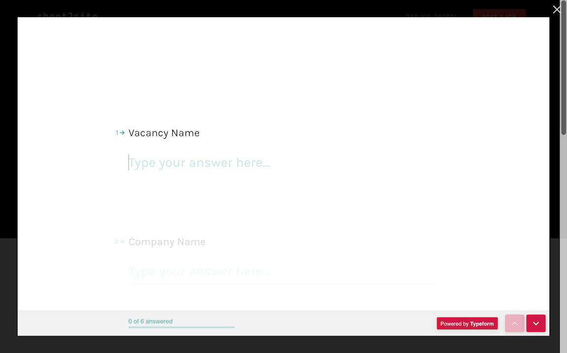 You can add a embeded Typeform that will pop-up when a user will click a link or a button
