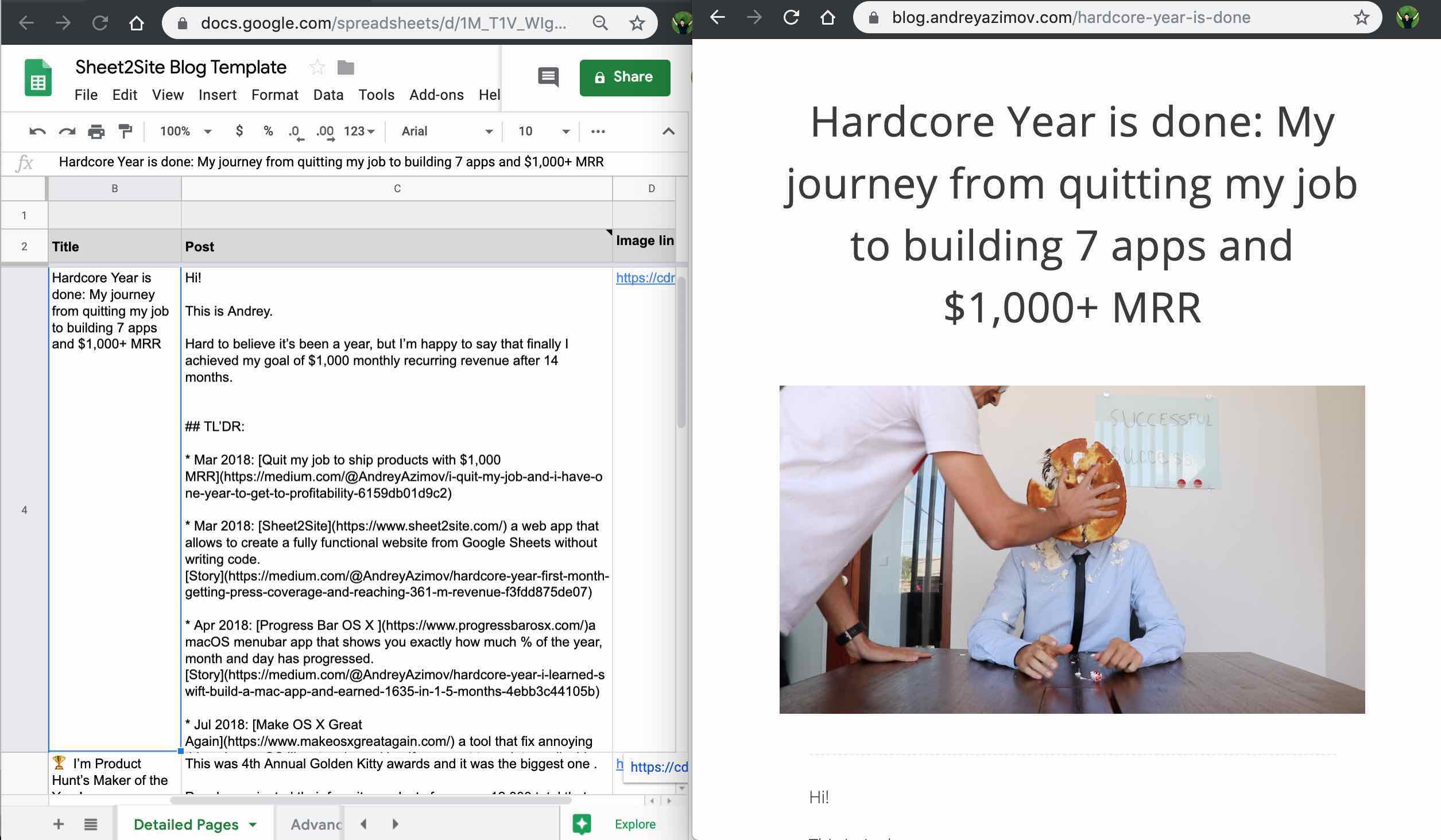 A lot of users of Sheet2Site asked me how they can create a simple blog from the spreadsheet.
