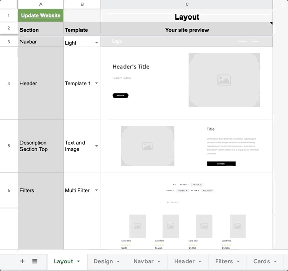 To have an idea how to work with Sheet2Site edit the sheet below and let the magic happen. This demo is showing only basic things that you can customize